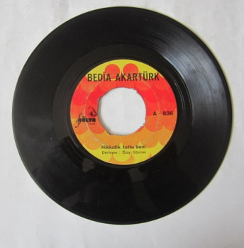 45'LİK PLAK: BEDİA AKARTÜRK, Hıkkıdık Tuttu Beni - Bir Kadeh Susuz Rakı