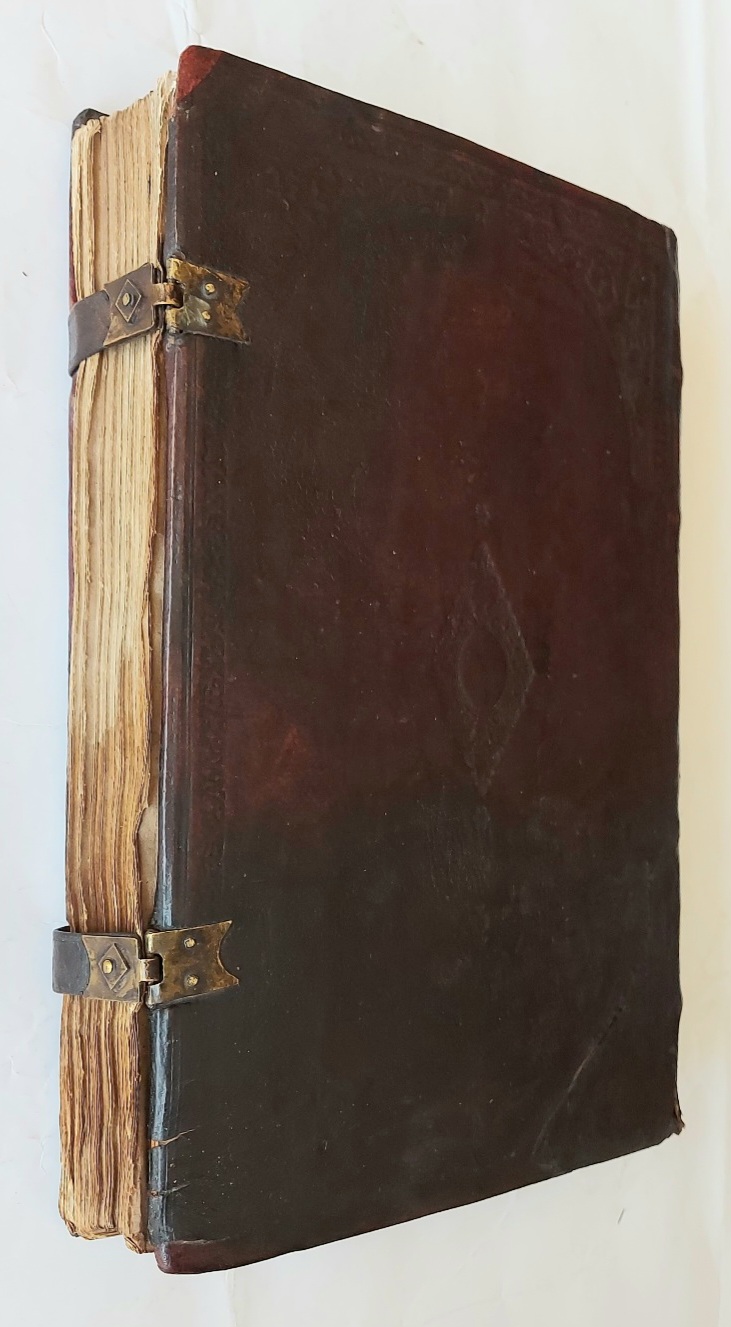 Döneminin filatolu, nakışlı, pirinç kapamalı komple deri, ihtişamlı cildinde.