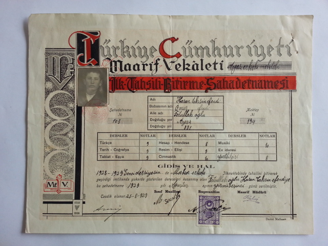Maarif Vekaleti İlk Tahsili Bitirme Şehadetnamesi