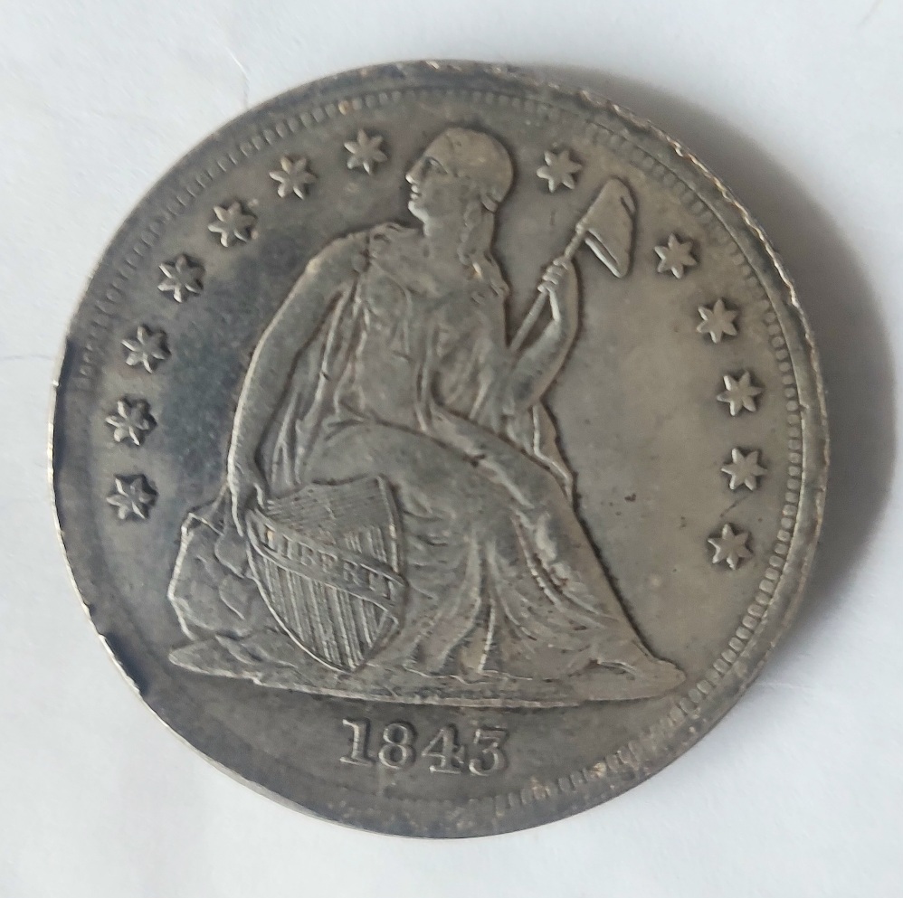 MADENİ PARA: United States of America One Dollar, 1843 Tarihli, Gümüş Kaplama [1922 REPLİKA]