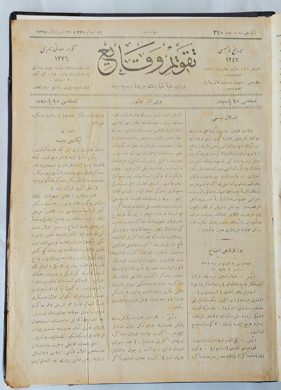 1908 sonrası Resmi Gazete olduktan sonraki sayılardan.