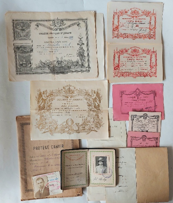 14 adet Charles Atechoglo'na adına, 1919-1921 tarihli, College St. Joseph tarafından verilmiş, Temoignage de satisfaction tres bien / Fevkalade belgesi, 16x12.