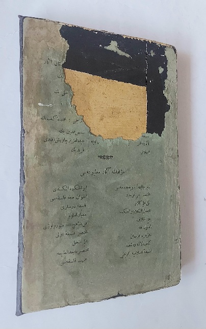 Kapakları yüzüne vurulmuş, döneminin mücellat cildinde.