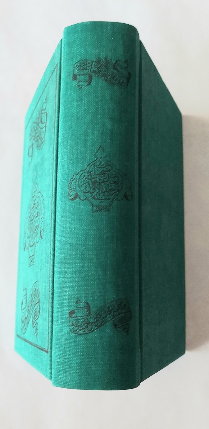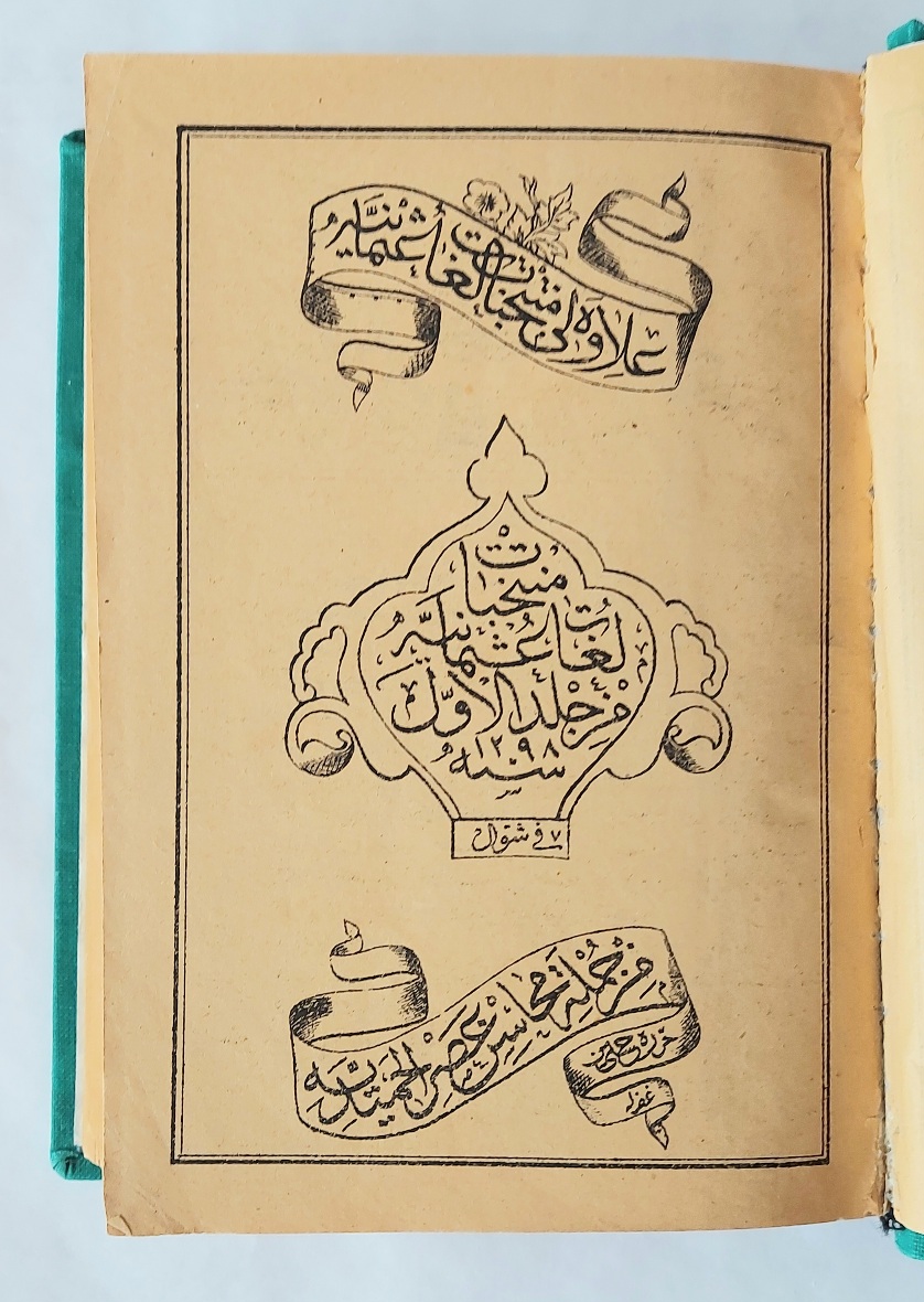 Yan kağıtları ebrulu, Osmanlıca hurufatlı, sanatkarane baskılı bez cildinde.