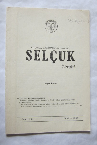 Selçuklu Araştırmaları Merkezi, Selçuk Dergisi, Sayı: 2, Ocak 1988'den ayrı baskı.