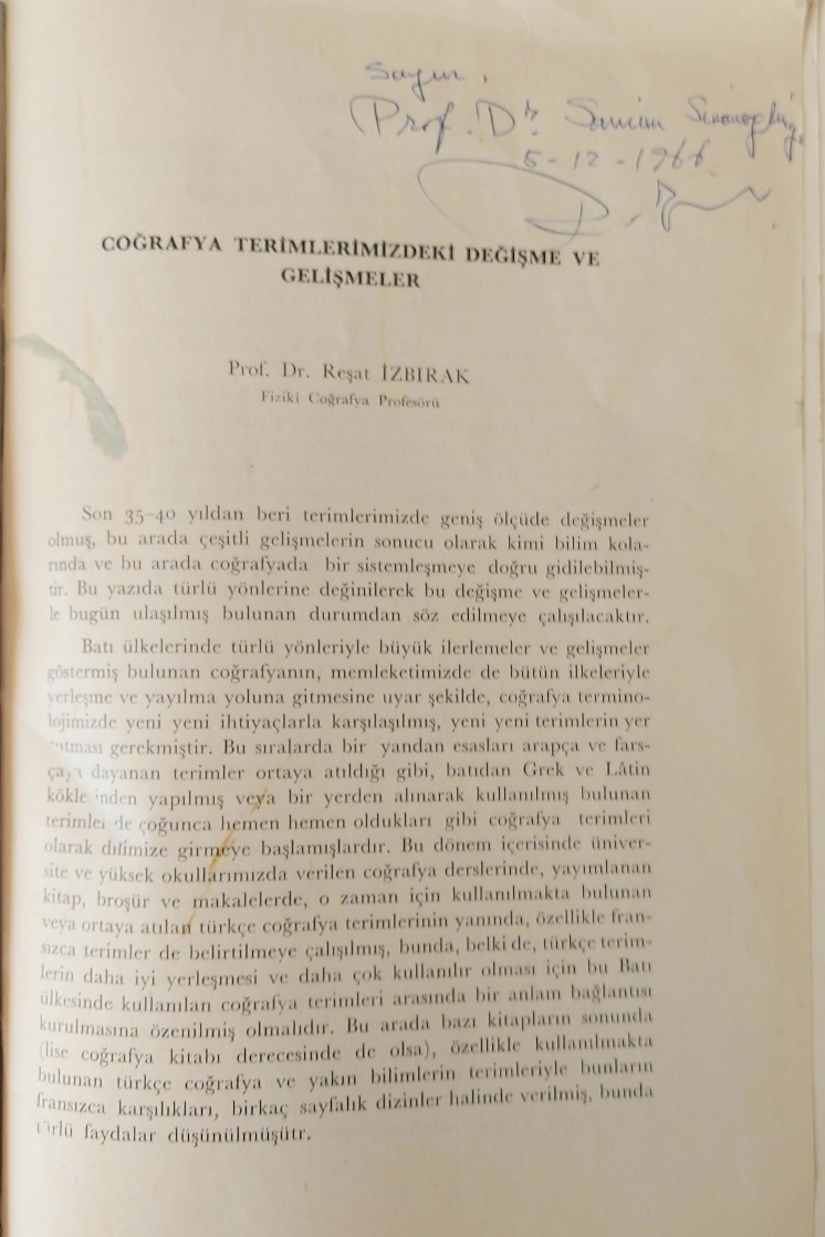 Coğrafya Araştırmaları Dergisi, Sayı: 1, 1966'dan ayrıbasım.