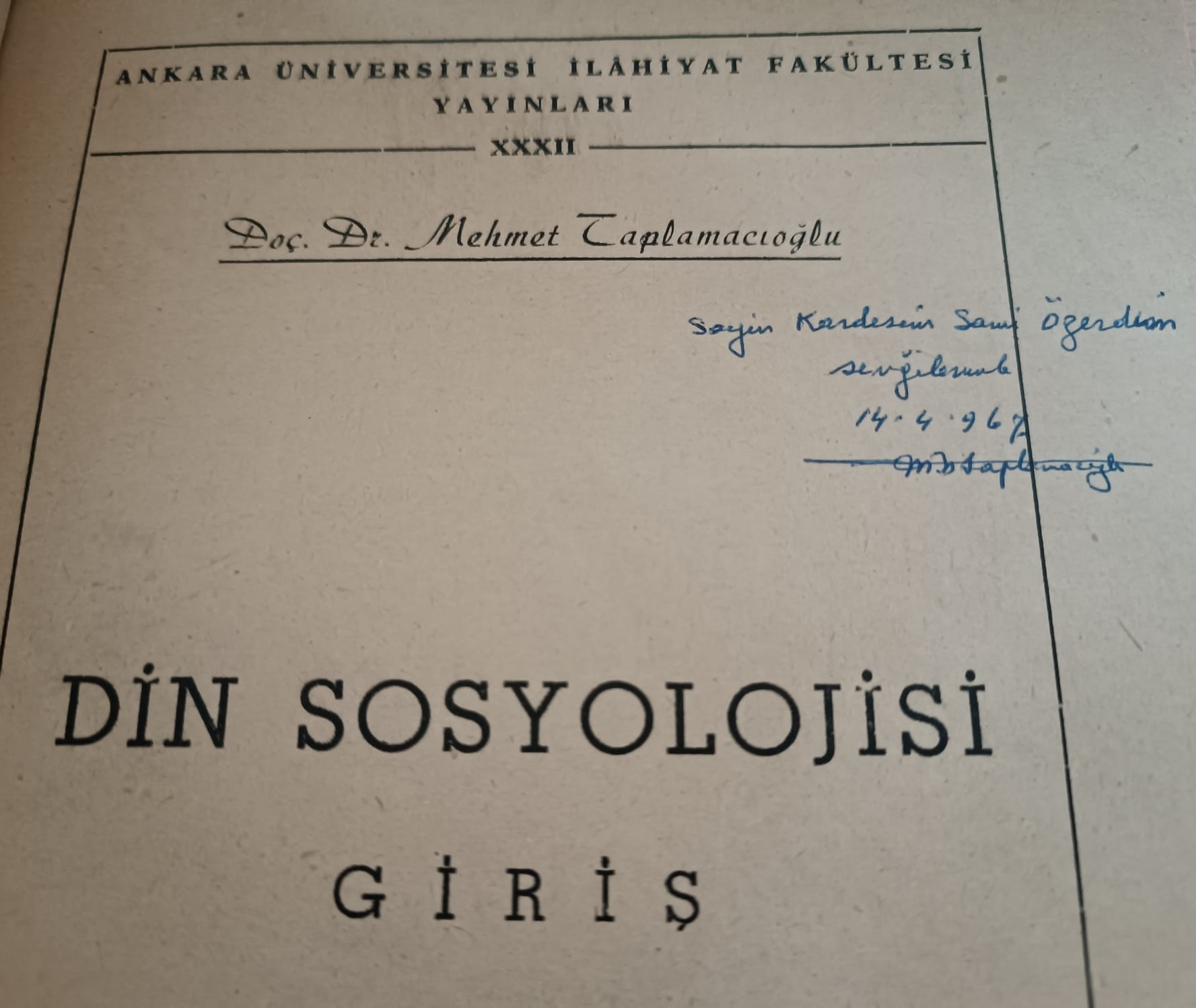 Din Sosyolojisi Giriş [İMZALI ve İTHAFLI]