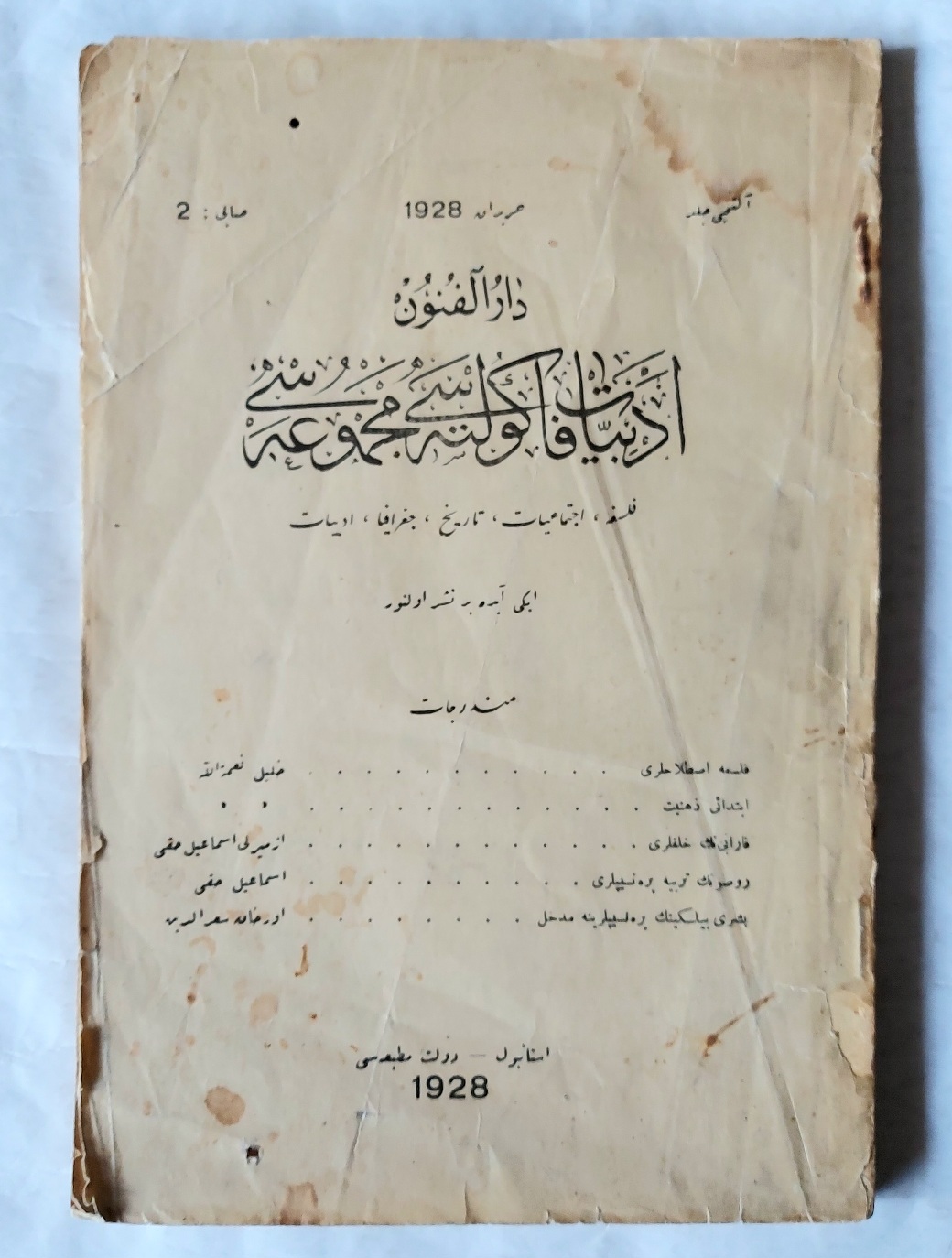 DARÜLFUNUN EDEBİYAT FAKÜLTESİ MECMUASI Felsefe, İctimaiyat, Tarih, Coğrafya, Edebiyat / İki Ayda Bir Neşrolunur, Haziran 1928, Altıncı Cild, Sayı: 2