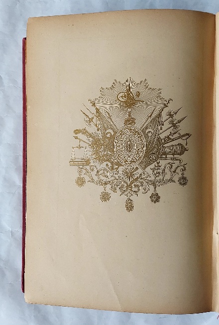 Ön ve arka kapakları tuğralı ve ay-yıldızlı, sırtı nakışlı Osmanlı cildinde.
