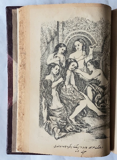 Bu kitabın ilk baskısı 1287 [1871] yılında yapılmıştır: Elfü'n-nehar ve'n-Nehar, Çeviren: Mustafa Hami, Ali Raşid, Ahmed Şükrü, Said Fehmi, İstanbul, Mekteb-i Fünun-u Harbiye-i Cenab-ı Mülukane Matbaası, 2 Cilt, 297-540 s. Ancak bu baskıda tasvirler (gravürler)yoktur.