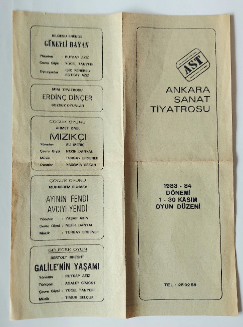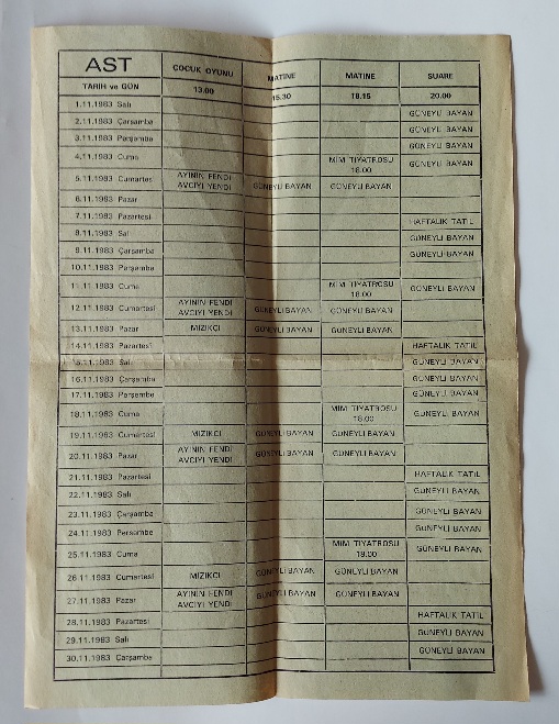 Ankara Sanat Tiyatrosu (AST) 1983-84 Dönemi 1 - 30 Kasım Oyun Düzeni