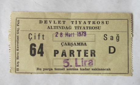 Devlet Tiyatrosu Altındağ Tiyatrosu Bileti - 28 Mart 1973