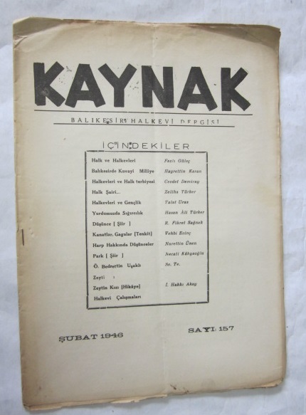 KAYNAK Balıkesir Halkevi Dergisi, 19 Mayıs 1933 - Şubat 1946, Sayı: 4, 27, 45, 46, 47, 48, 49, 59, 60, 61, 79, 88, 115, 120-121, 152-154, 155-156, 157 [16 ADET]