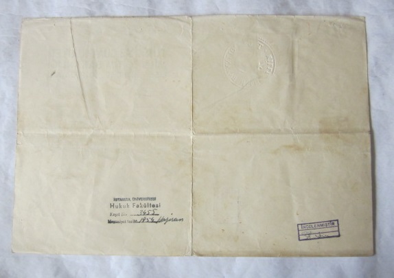 Arkada İstanbul Üniversitesi Hukuk Fakültesi kaşesi var.